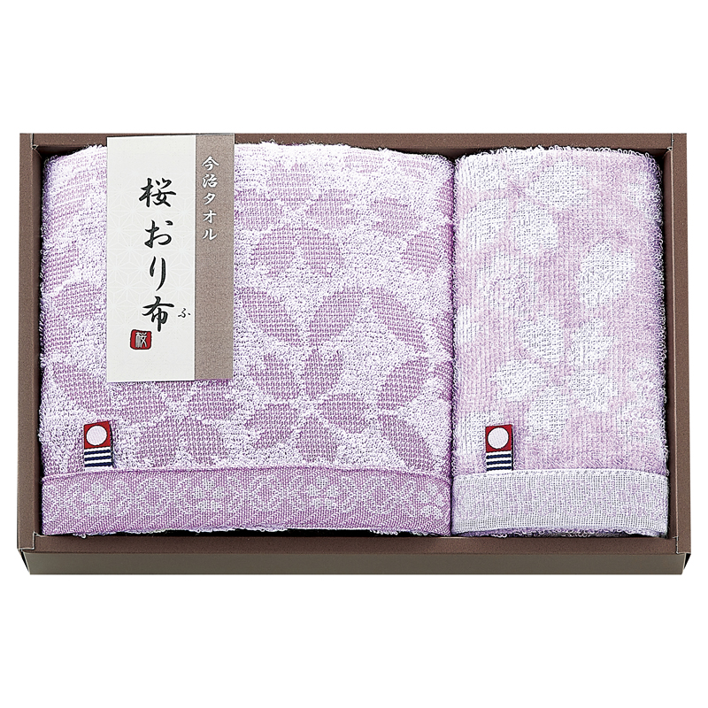 美しい桜柄をあしらった華やかなタオル 気品ある桜の柄は、今治が得意とするジャカード織を活かして織り上げています。柔らかなガーゼやパイルのタオルは、優しい肌ざわりが魅力です。