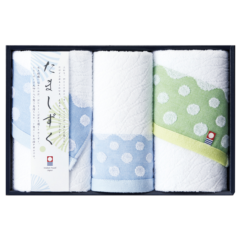 大切な人を思う気持ちをそっと包み込むタオル ふわり、やさしさ、ひとしずく。まあるい水玉模様がやさしく寄り添う今治タオルです。水玉模様に込めた想いをのせて、大切な方へお届けします。