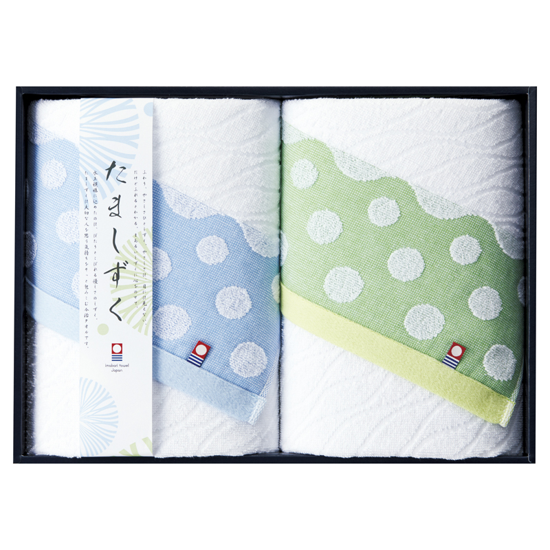 大切な人を思う気持ちをそっと包み込むタオル ふわり、やさしさ、ひとしずく。まあるい水玉模様がやさしく寄り添う今治タオルです。水玉模様に込めた想いをのせて、大切な方へお届けします。