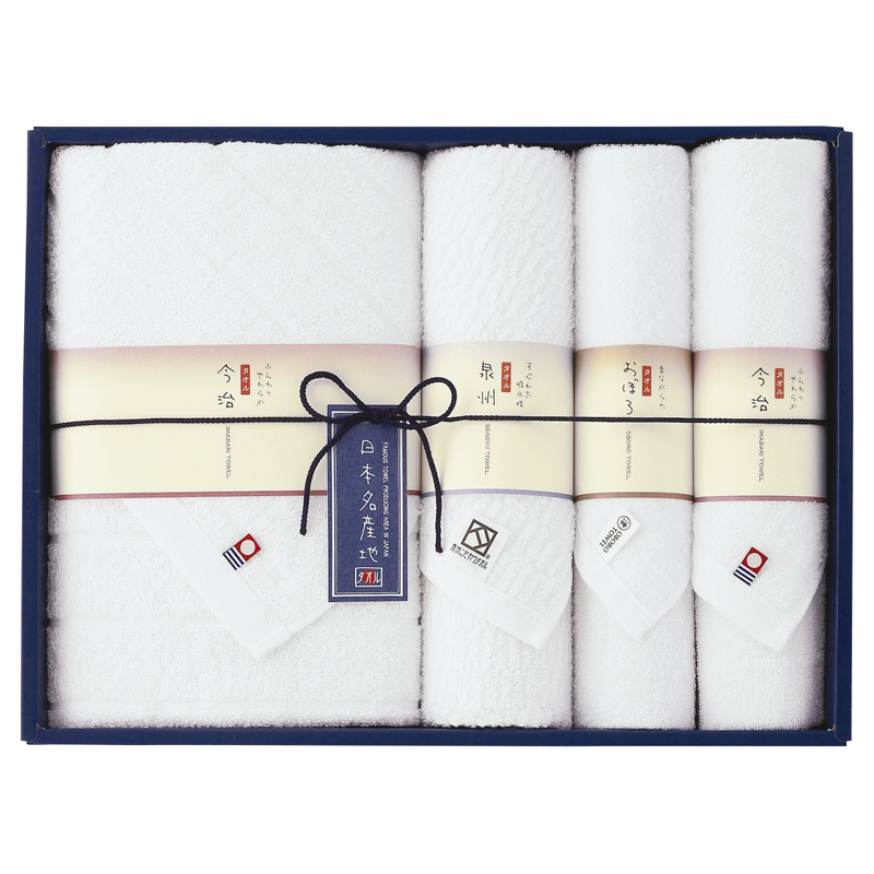 タオルの3大生産地、今治・泉州・三重(おぼろタオル)の品質、吸水性の良い実用的なタオルをギフトにしました。