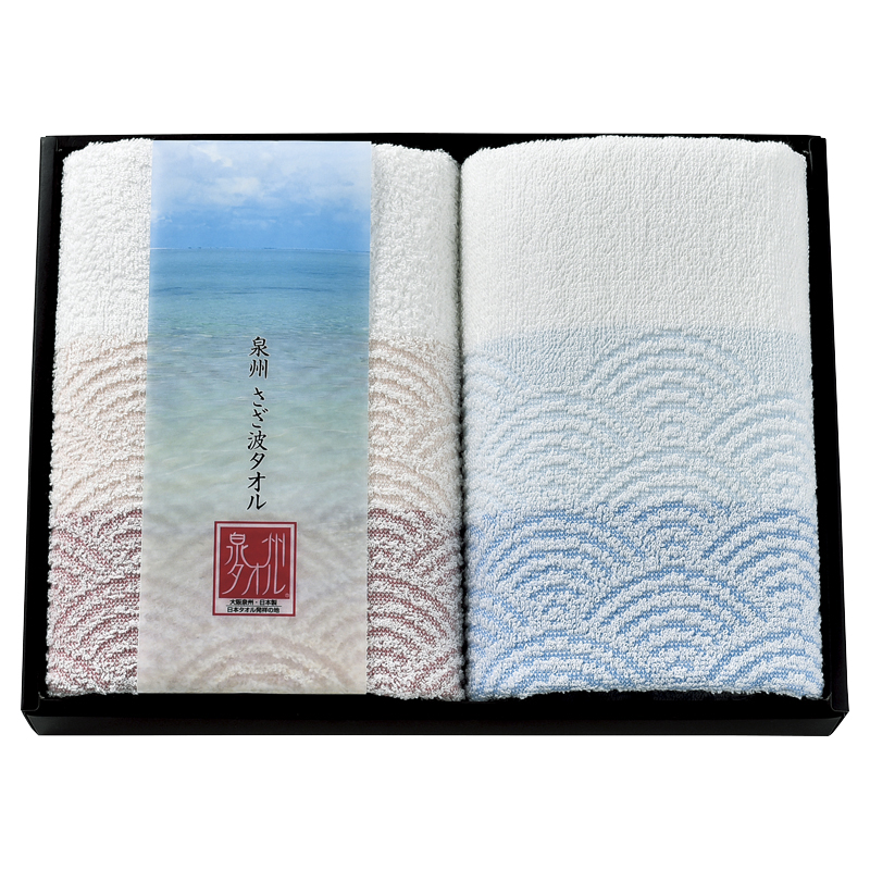 大阪・泉州の後晒製法により清潔感のある吸水性の良いタオルに仕上がりました。広大な海原をイメージしたやわらかいタオルです。