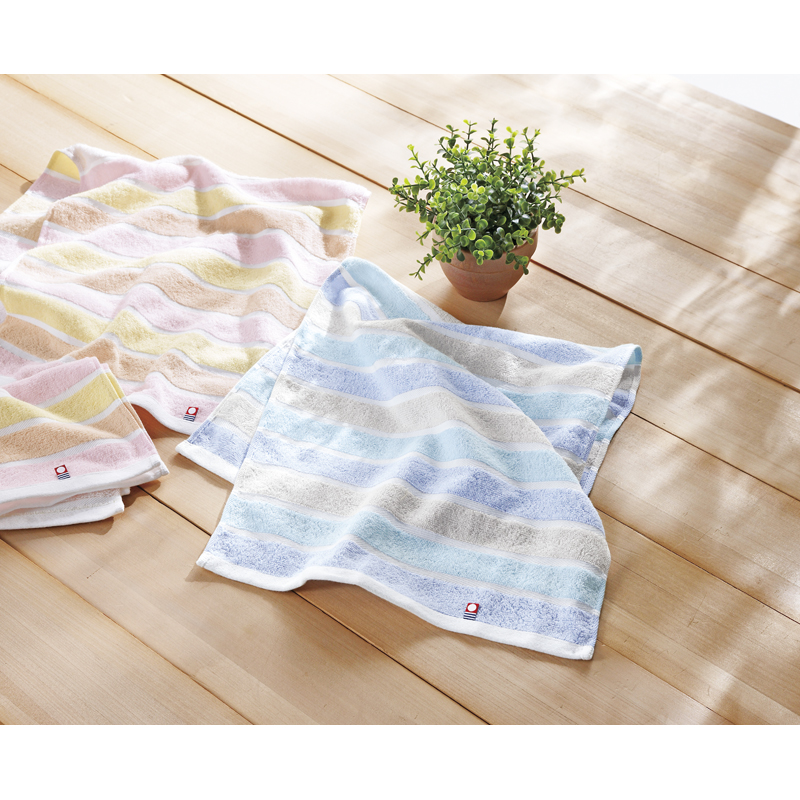 落ち着いた色合いのボーダー柄で、老若男女を問わず使っていただけるタオルです。