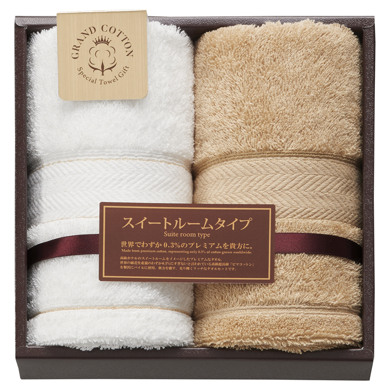 高級ホテルのスイートルームをイメージ。世界の綿花生産量のわずか0.3%にすぎないと言われている高級超長綿「ピマコットン」を贅沢にパイルに使用。貴方を癒す、光り輝くリッチなタオルセットです。