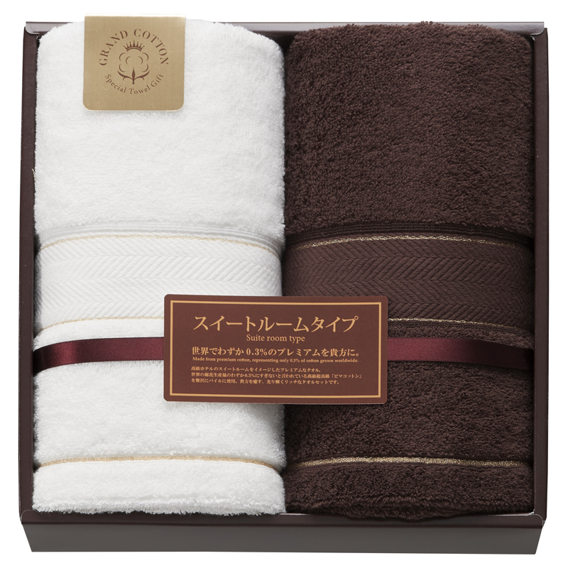 高級ホテルのスイートルームをイメージ。世界の綿花生産量のわずか0.3%にすぎないと言われている高級超長綿「ピマコットン」を贅沢にパイルに使用。貴方を癒す、光り輝くリッチなタオルセットです。