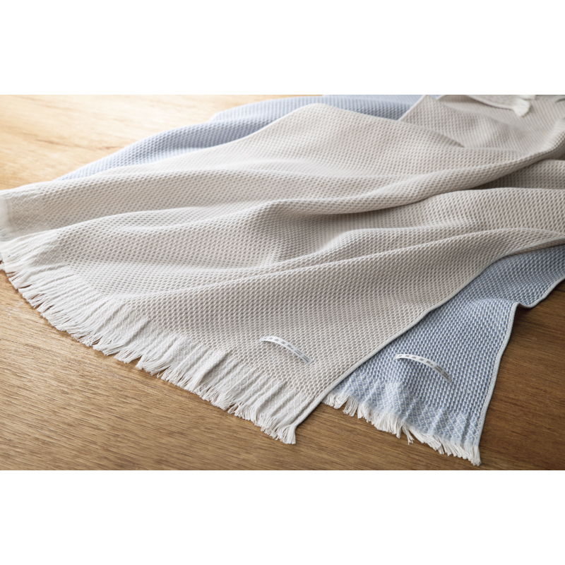 ハニカム蜂の巣構造のひざ掛けは通気性・速乾性に優れ、爽やかな使い心地です。