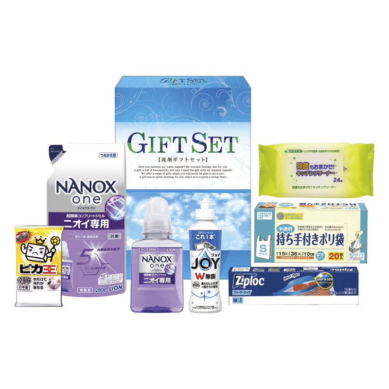 | 内容 | ライオンNANOXone380g・ライオンNANOXone詰替用280g・P&G除菌ジョイコンパクト170ml・ジップロックフリーザーバッグM3枚・持ち手付きポリ袋S20枚・キッチンクリーナー24枚・ピカ王ミニ×各1 |