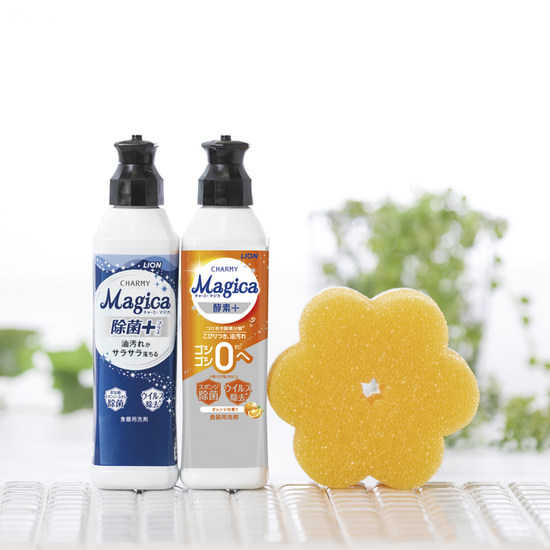 | コピー | クリーンな毎日を贈る ナノ洗浄でベタつく油汚れもサラサラ落とす食器用洗剤・チャーミーマジカと、マイクロファイバークロスなどがセットになった、役立つキッチン洗剤ギフトです。かわいらしい花型のスポンジとチャーミーマジカで食器洗いを楽しくサポートします。 |