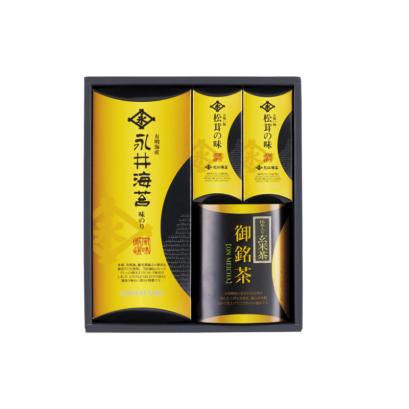 永井海苔 味付海苔(8切6枚×2)・抹茶入り玄米茶50g×各1、永井海苔 お吸い物(松茸風味)(3.3g×2)×2