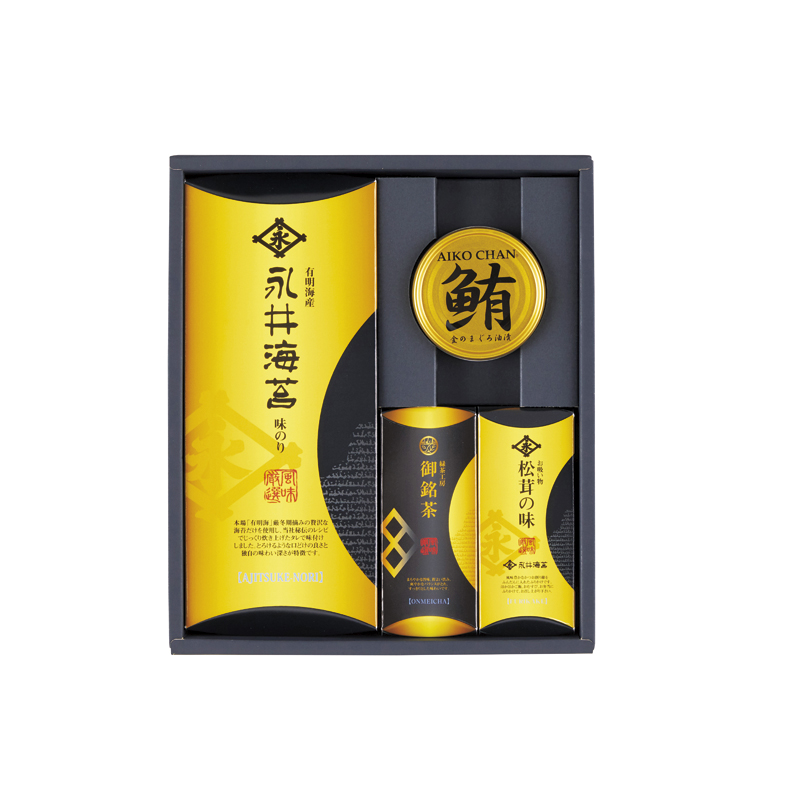 永井海苔 味付海苔(8切6枚×2)・永井海苔 お吸い物(松茸風味)(3.3g×2)・ライトツナフレーク油漬け70g・深蒸し茶40g×各1
