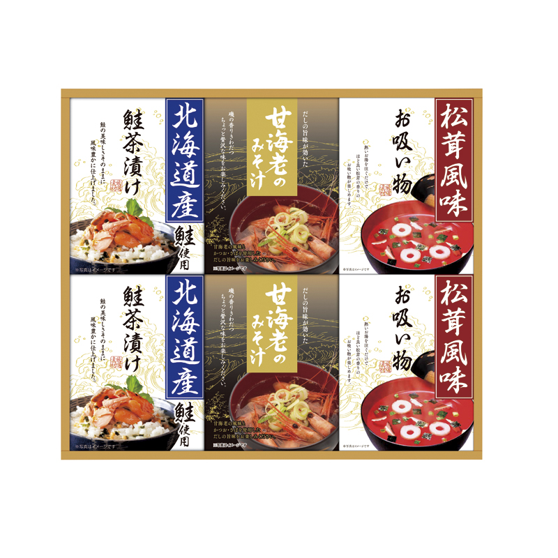 甘海老みそ汁(7.5g×3)・北海道産鮭茶漬け(4g×3)・永谷園松茸風味お吸い物(2.3g×4)×各2