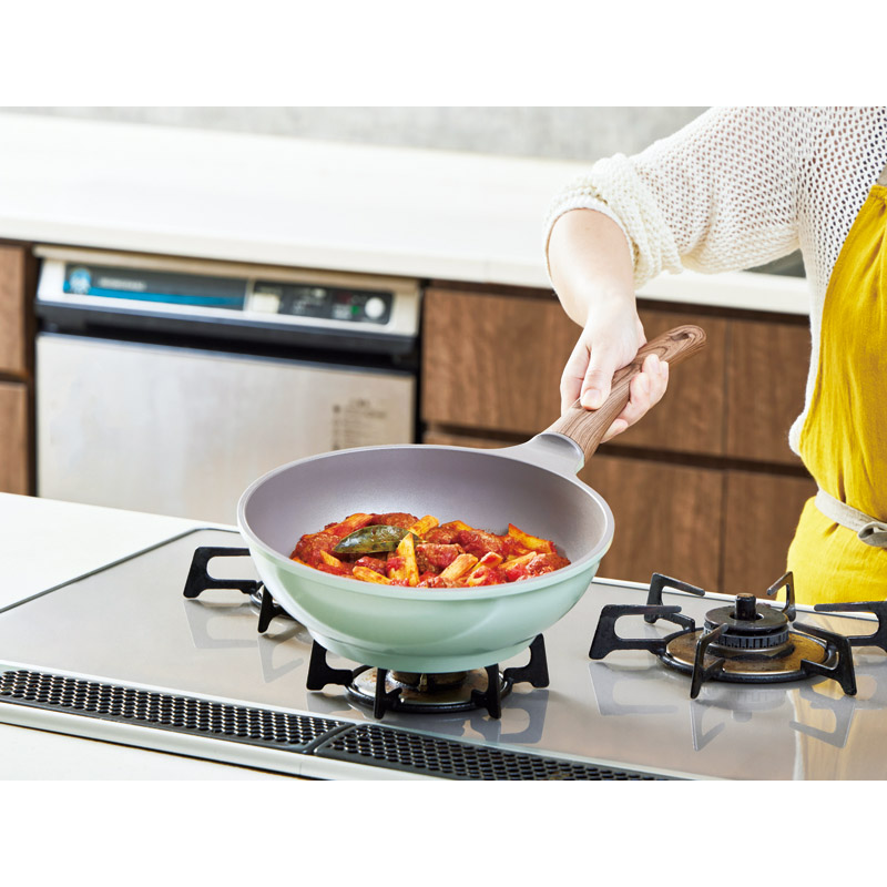 | コピー | さわやかなくすみグリーンで、キッチンを鮮やかに彩ります。こびりつきにくいダイヤモンドコート加工。接合部分にリベット(留め具)がない為、洗いやすいです。軽量なアルミダイカストを採用。強度に優れ、熱伝導率が高いため、素早く調理できます。PFOA・PFOS不使用。レシピブック付。 |