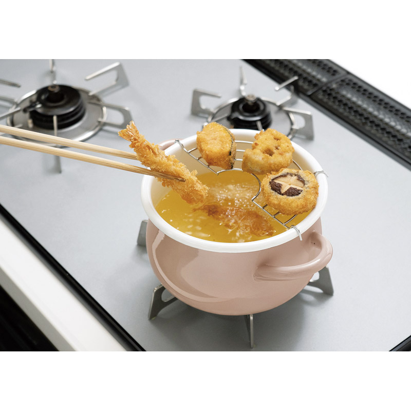 保存に最適ホーローお鍋。揚げ物から煮込み、炊飯まで幅広く活躍します。揚げアミやシール蓋付で便利です。 |