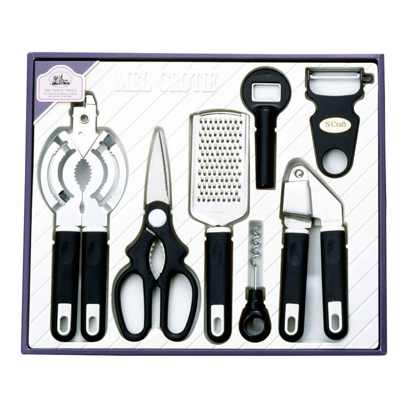 キッチン鋏・皮引き・おろし器・コルク抜き・栓抜き・ジャーオープナー・にんにく絞り×各1