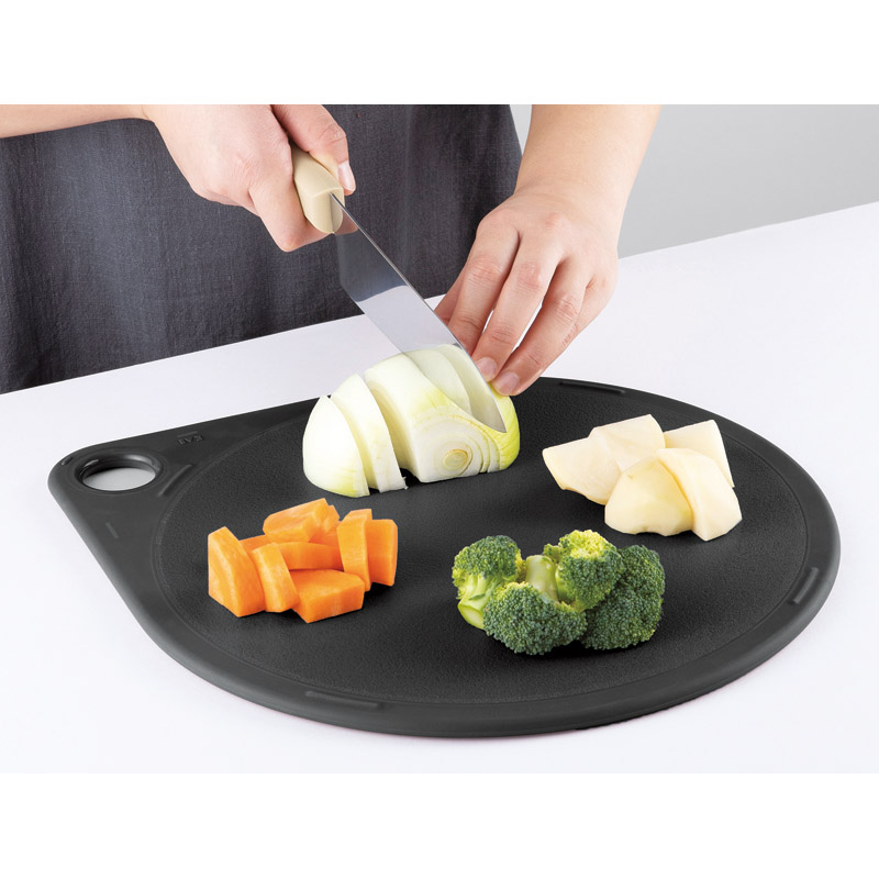 | コピー | 奥行きたっぷり、ひろい作業スペースが魅力のまるいまな板です。まな板を回転させることで、切った食材を仮置きしたまま使用でき、洗い物も軽減。裏表で異なる表面加工が施されているため、食材によって使い分けることができます。全周をエラストマーで覆っているため、軽くてもまな板が滑りにくく、食材を切る際のストレスが軽減されます。立てかけ収納可能。食洗機OK。 |