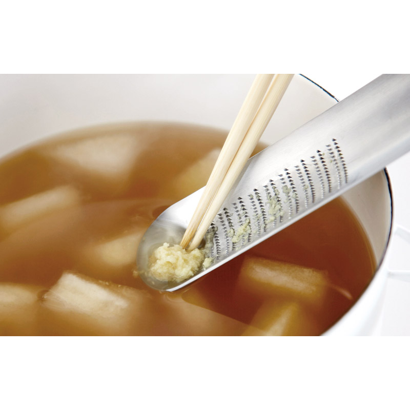 | コピー | トレーのようなモダンデザインなので、そのままテーブルに出しても素敵です。ワサビやしょうがなどの薬味を卓上ですりおろし、新鮮なまま料理に添える。周囲にカーブをつけたトレー形状で、こぼれにくく、汁物などには薬味を溶かしながら入れられます。 |