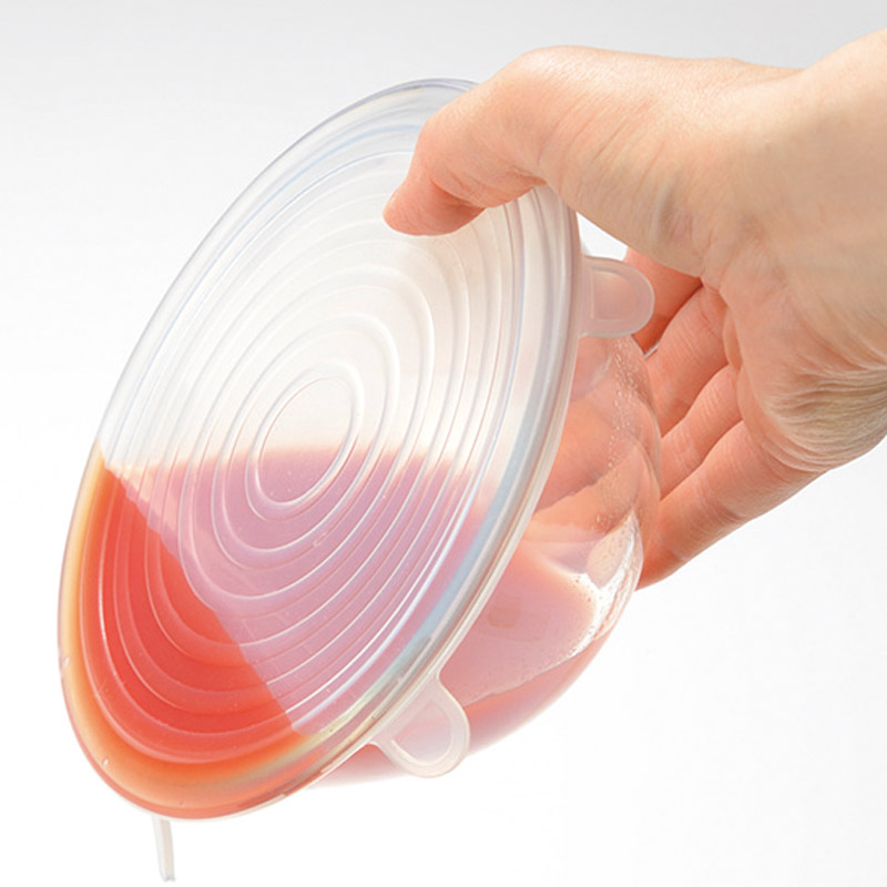 | コピー | 伸びてピタッと保存できる抗菌剤入りのラップです。ピッタリ容器にフィットするので汁物が漏れにくいです。着脱しやすいつまみも付いています。洗って繰り返し使えるので環境にも優しい商品です。 |