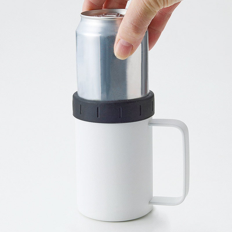 | コピー | 350mlの缶がそのまま入り保冷効果により冷たさが持続します。缶の抜け落ち防止用のシリコンリングを外すと、真空2層マグとしてもお使いいただけます。 |