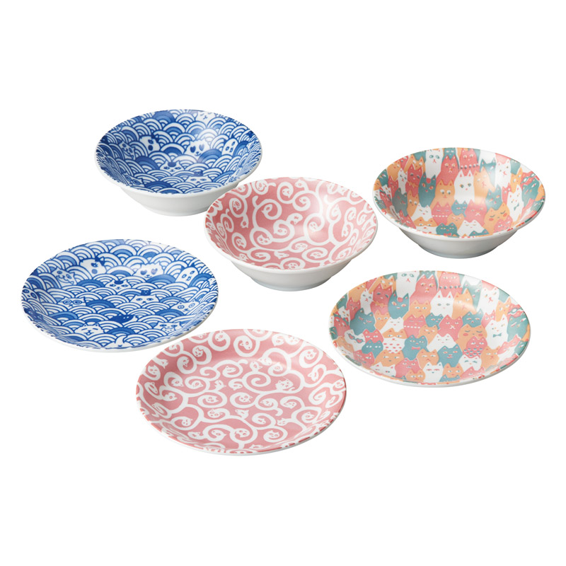 商品詳細:愛sayama ねこだらけ デザート皿&ボウル6Pセット