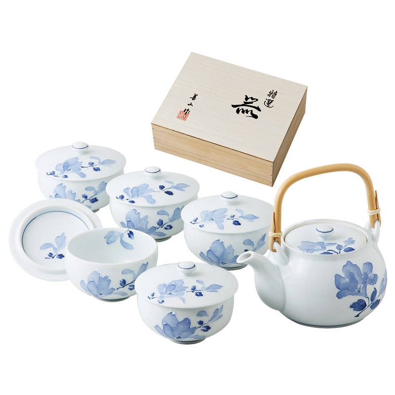 商品詳細:波佐見焼 辻が花 蓋付茶器揃