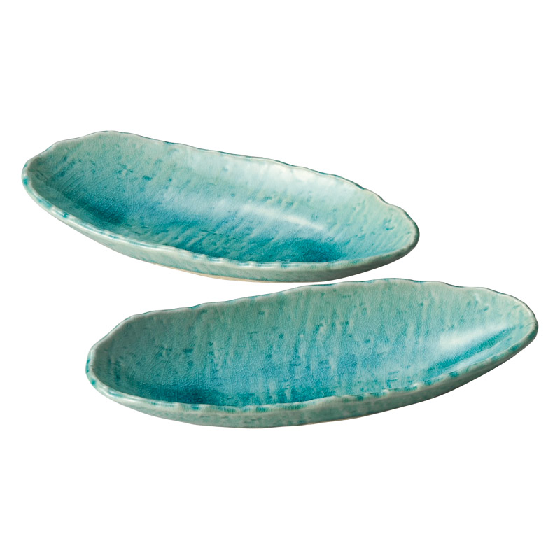 商品詳細:瀬戸焼 ブルー貫入 舟型鉢2P