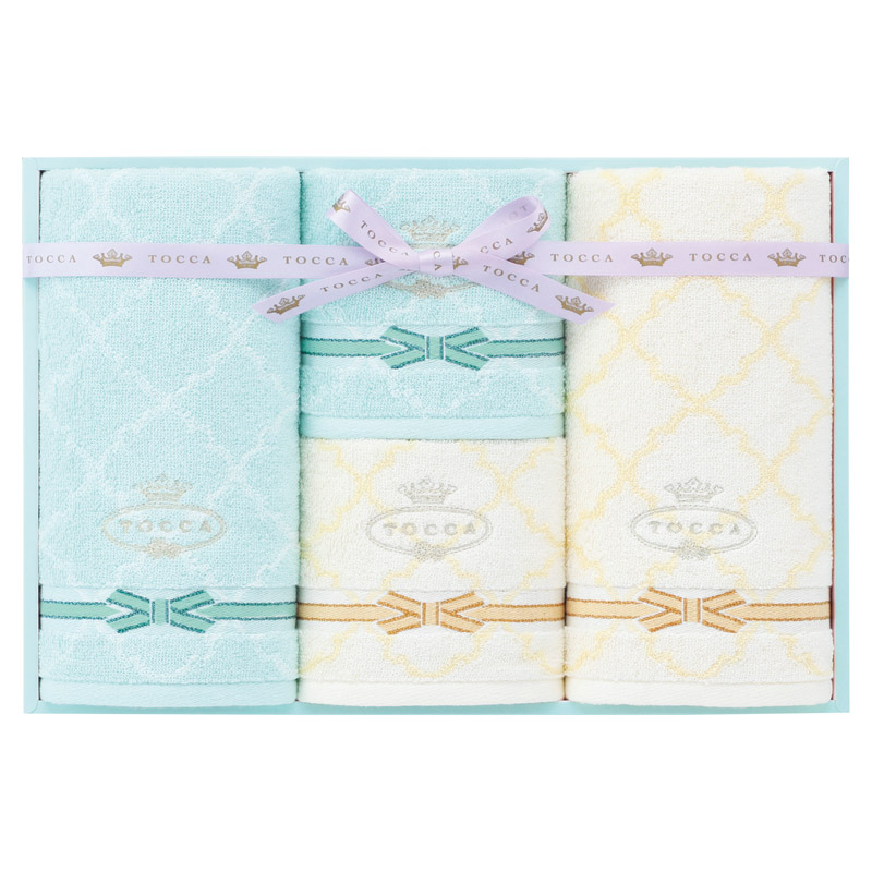 | コピー | 「TOCCA」は、英語の“TOUCH”に相当するイタリア語で、触れてみたくなるような複雑な刺繍や豪華な織物へのこだわりからネーミングされたニューヨーク発のファッションブランドです。TOCCAのアイコニックな総柄と、さりげないリボン柄を組み合わせた、フェミニンで上品なデザインに仕上げました。刺繍とリボンにはラメ糸を使用した、清楚な中にも華やかさを感じるご進物にふさわしいシリーズです。 |
