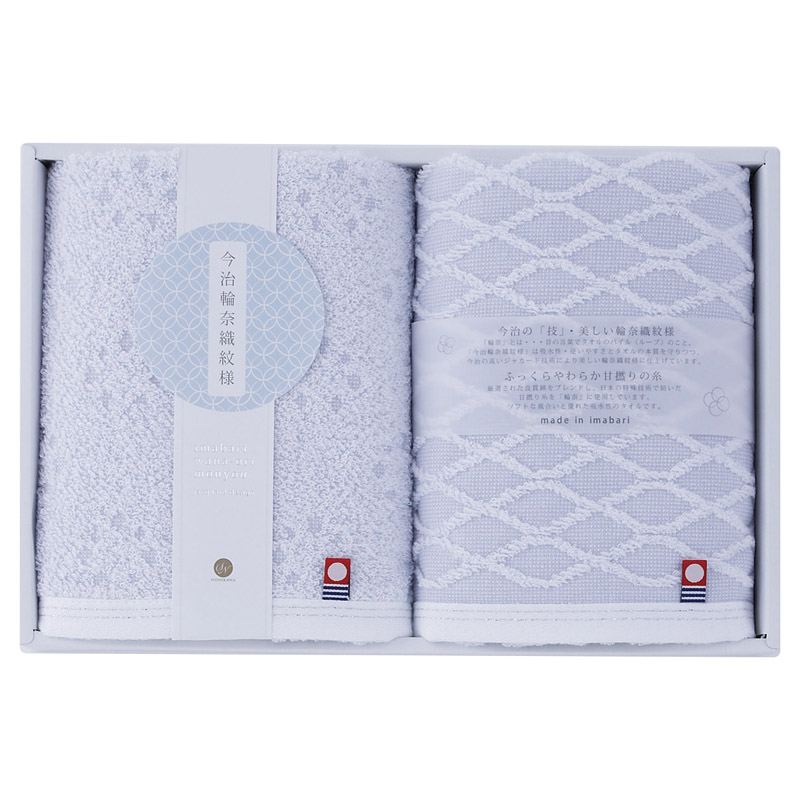 | 商品名 | 今治輪奈織紋様 あられ&つなぎ フェイスタオル2P |