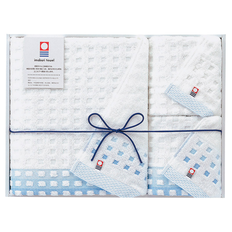 今治の海をイメージした爽やかな色使いのタオルです。