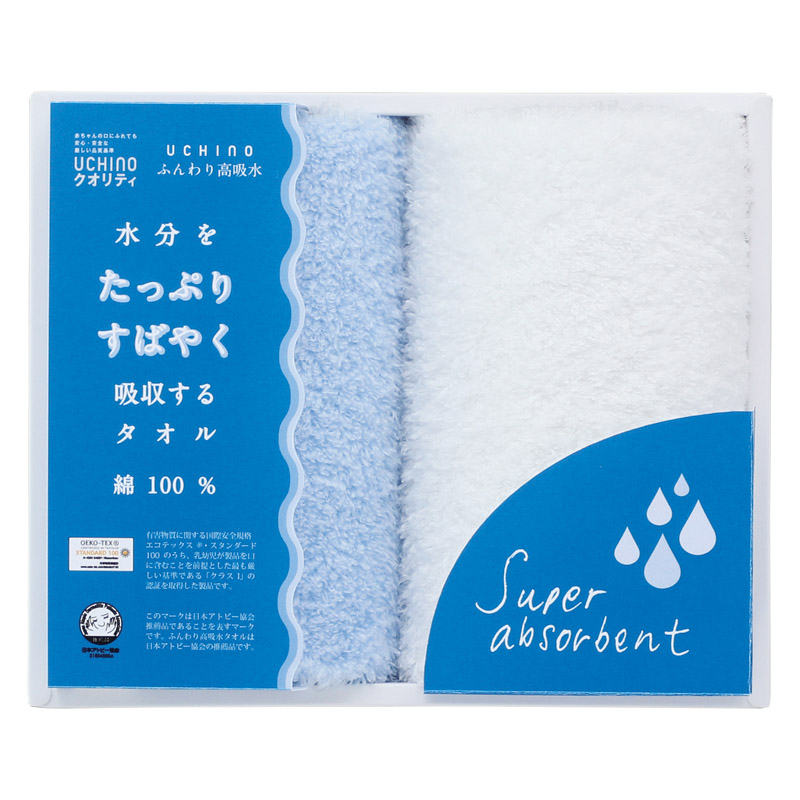 「吸水力」を追求したタオルギフト。超長綿コーマ無撚糸を使用したふんわりとした感触と優れた吸水性が特長です。