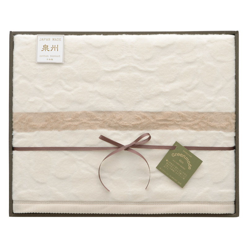 エンボスの立体的なリーフ柄のナチュラルデザインの綿毛布です。 |