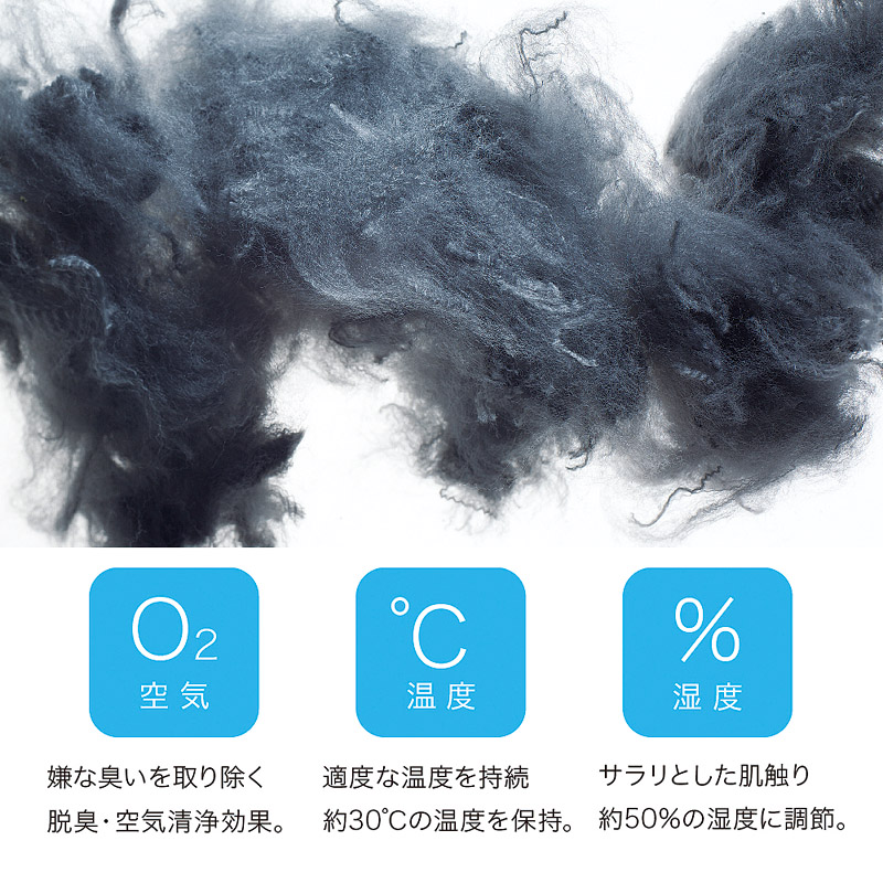 | 材質 | 側地:ポリエステル65%・綿35%、詰物:ポリエステル100%(炭コート加工わた含む) |