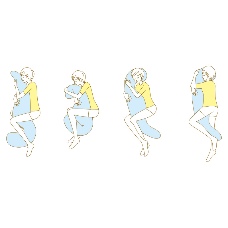 独特のフォルムが、どんな寝姿勢にもかしこくフィット。横向き寝やうつぶせ寝の手足のポジションを安定させます。