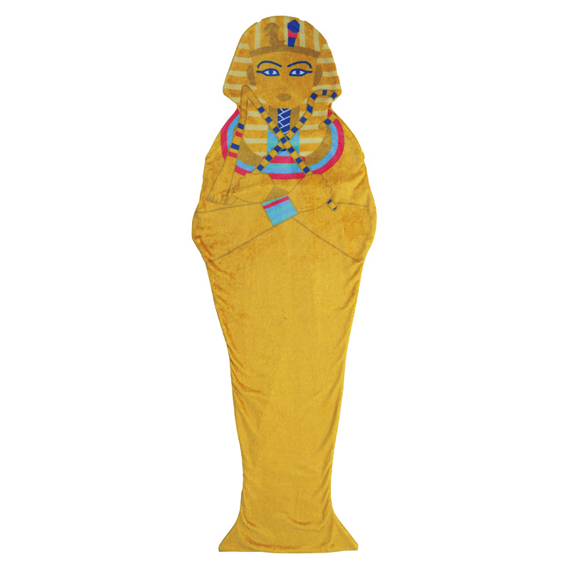 ユーモアあふれるツタンカーメン型のマーメイドブランケット。