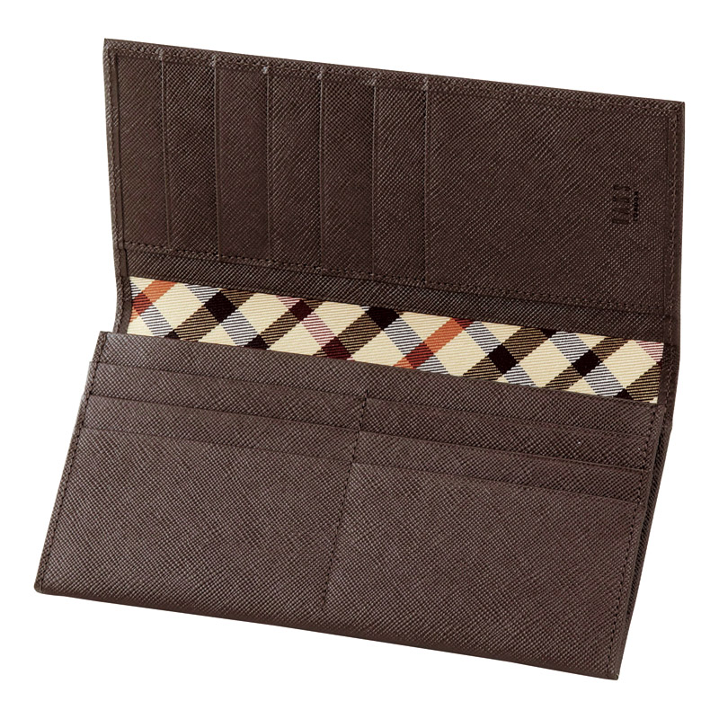 ダブルエンボス加工により表現されたチェック柄が存在感を引き立てます。・札入×1・カード入×16・ポケット×4・ファスナー式小銭入×1・背面ポケット×1