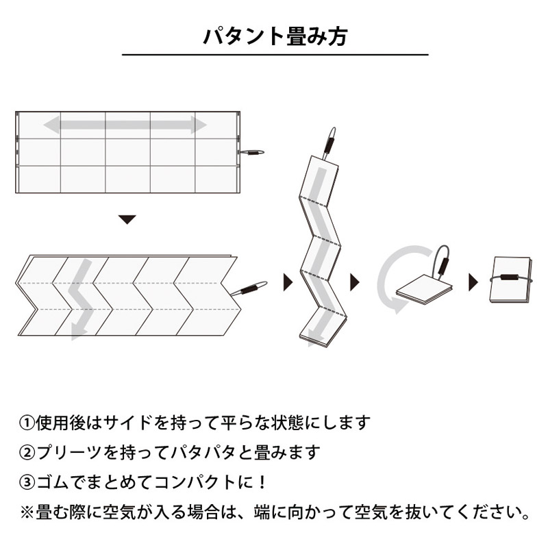 プリーツ加工されている生地を使用しているのでプリーツに沿ってパタパタするだけで簡単に畳めてコンパクトに持ち歩けます。入り口が広く、物の出し入れがスムーズ!