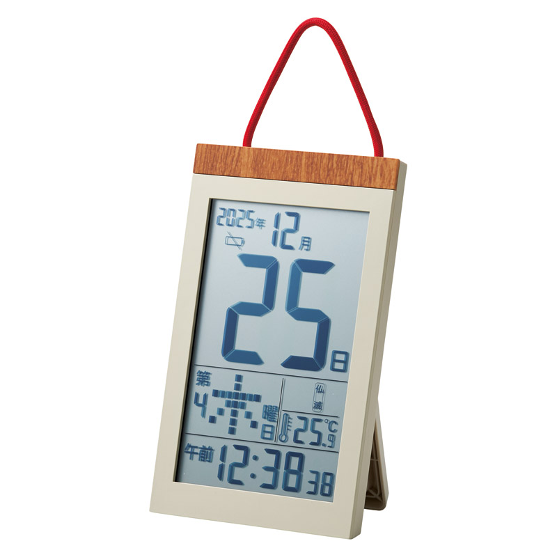 記念日設定もできる日めくり電波時計。○アラーム○スヌーズ機能○第何曜日表示○六曜表示○記念日設定(18日分)○置掛兼用