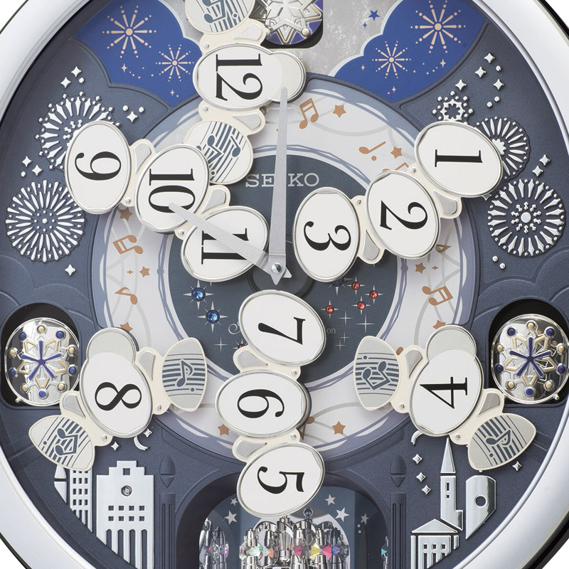 | コピー | 夜空に舞う花火をイメージした、幻想的なからくり時計。シルバーを基調とした優美な世界が広がります。○クォーツ時計○毎正時メロディ○音量調節○自動鳴り止め○回転飾り |