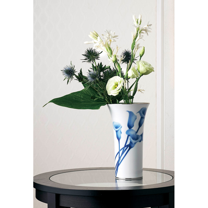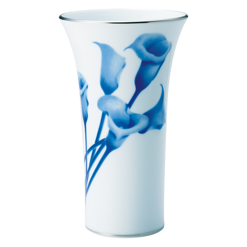 美しいグラデーションの染付で描かれたカラーの花はシンプルで気品があります。