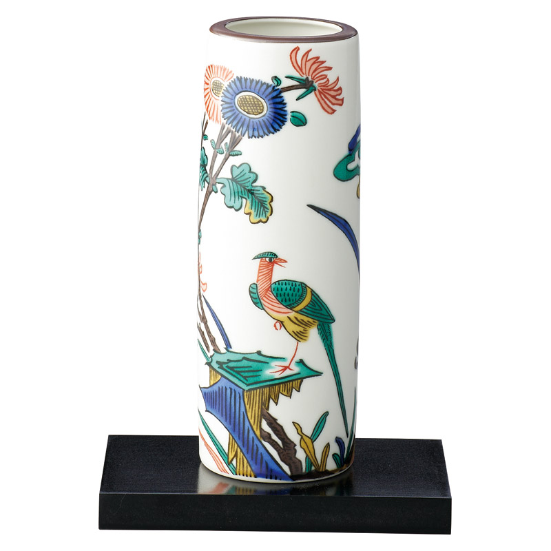 商品詳細:九谷焼 古九谷風花鳥 木台付6号花瓶