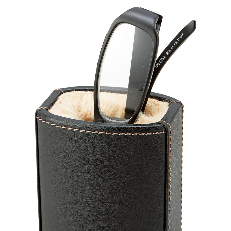 大切なメガネの傷つきやすいレンズを内張のボアがやさしく保護します。デスクやベッドサイドにあると便利なアイテム。