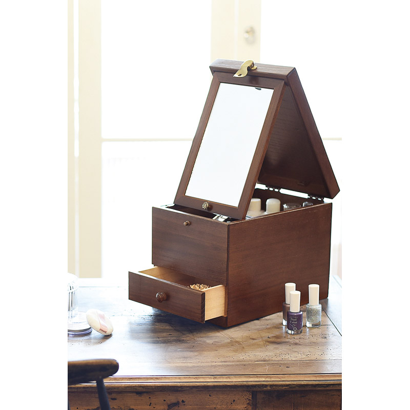 職人により一つ一つ丁寧につくられた、流行に左右されないシンプルなコスメボックスです。日本製の確かな品質と、木製品ならではの重厚感と温かみは、時を超えてずっと側に置きたい逸品です。