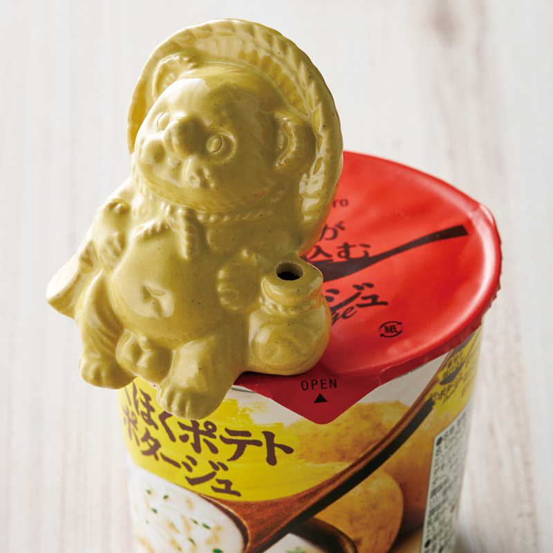 小さくて可愛いオスの座り狸。カップ麺の蓋を押さえたりデスクに腰掛けさせたり、色々使えます。