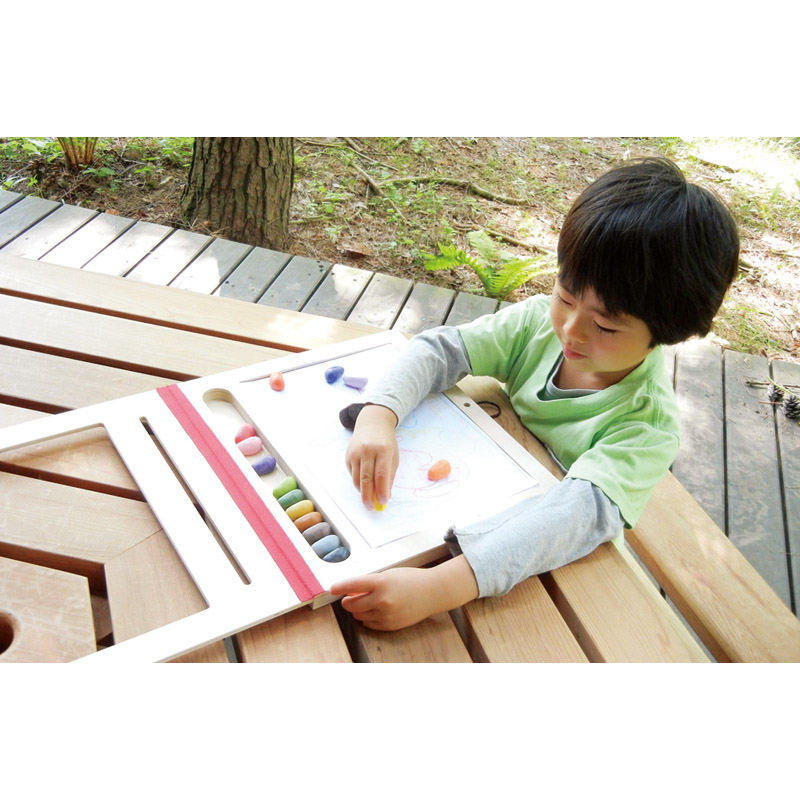 | コピー | 「MUSEO」は子どもの豊かな成長を促す、お絵描きの時間をスマート&シンプルにできる画板です。付属のクレヨンは握力の弱い小さな子どもの手でも持ちやすい形状になっており、素材も安心、安全にこだわった天然素材を採用しています。 |