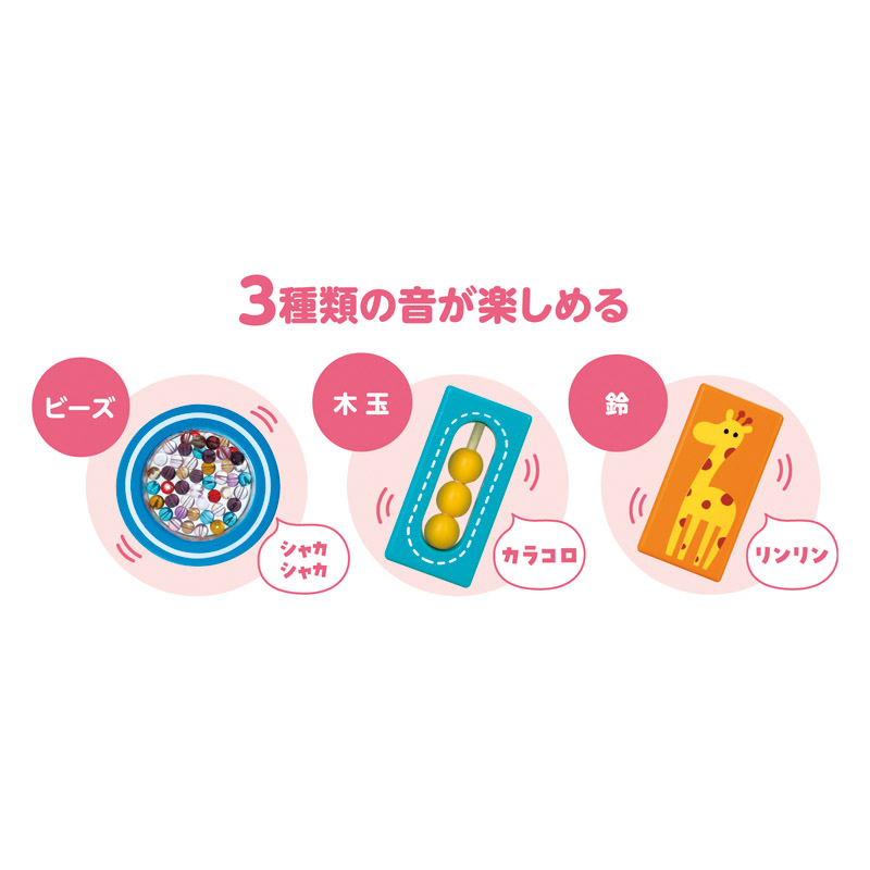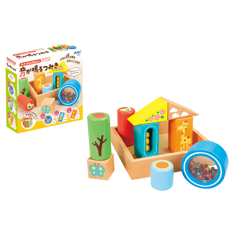 ふると音が鳴るかわいいつみき。ビーズ・木玉・鈴、色んな音がなります。こどもでもつかみやすい大きさ。
