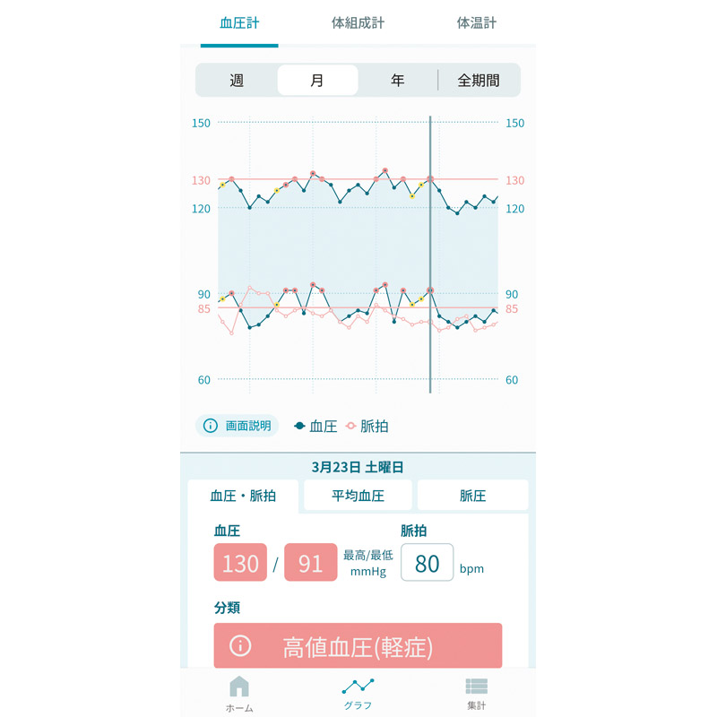 装着しやすい「カプッとカフ」を採用。Bluetooth®搭載で簡単アプリ管理。■60回分メモリー■気温表示■測定姿勢ガイド■血圧分類表示■体動マーク■脈間隔変動マーク■収納ケース付き