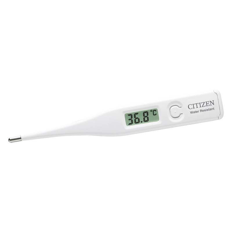スタンダードタイプの実測式。抗菌・防水仕様で水で洗えて清潔。わきでも口でも検温可能。●実測式●防水●抗菌●前回値メモリー