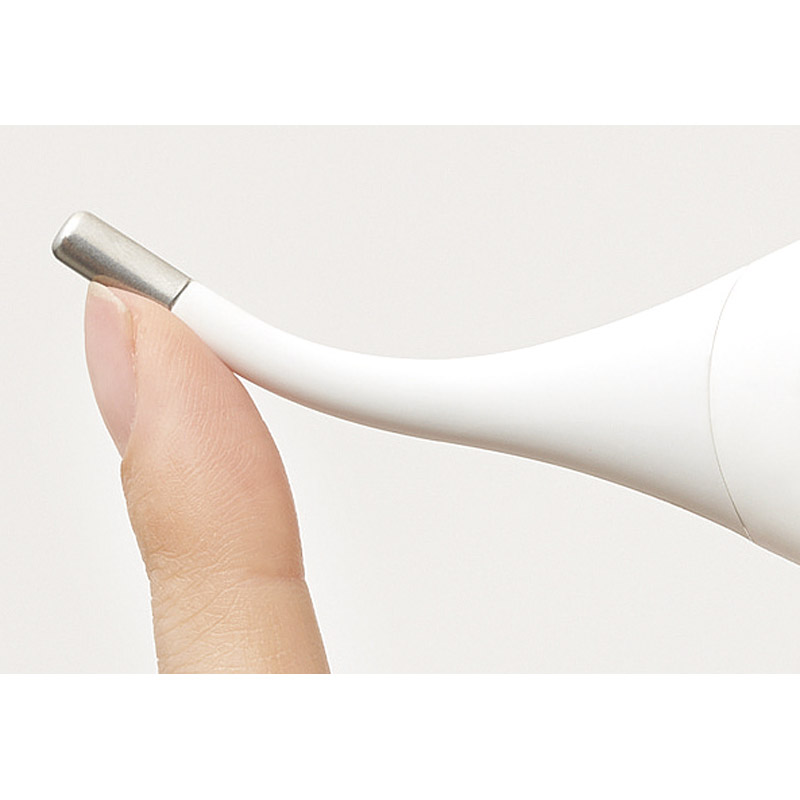先端が柔らかく曲がるので、乳幼児の検温に安心。平均15秒のスピード検温の、赤ちゃんのための体温計。わき専用。予測式/実測式。●バックライト●抗菌●メモリ10回(日時付き)