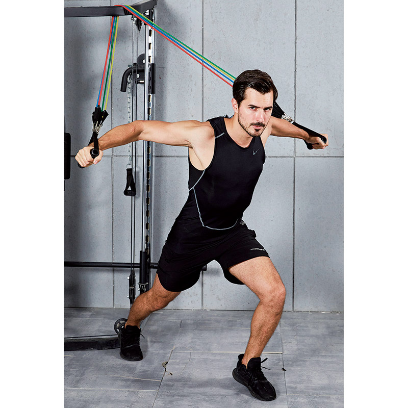 5種の強度のゴムバンドで、自分に合った適度な負荷をかけたトレーニングやストレッチができます。便利なドアストッパー付きで一人でもチューブトレーニングができます。