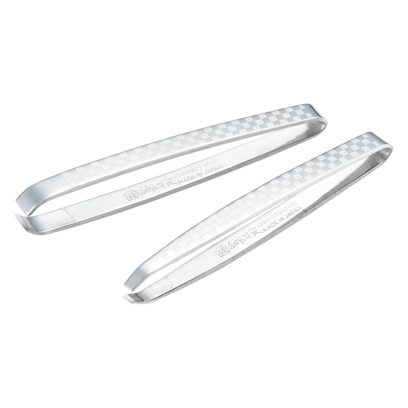新潟県燕三条市の職人作。先端部が「先細」と「幅広」形状の2本ペアセットです。先端がぴったりと合うのでしっかりと毛を掴めます。