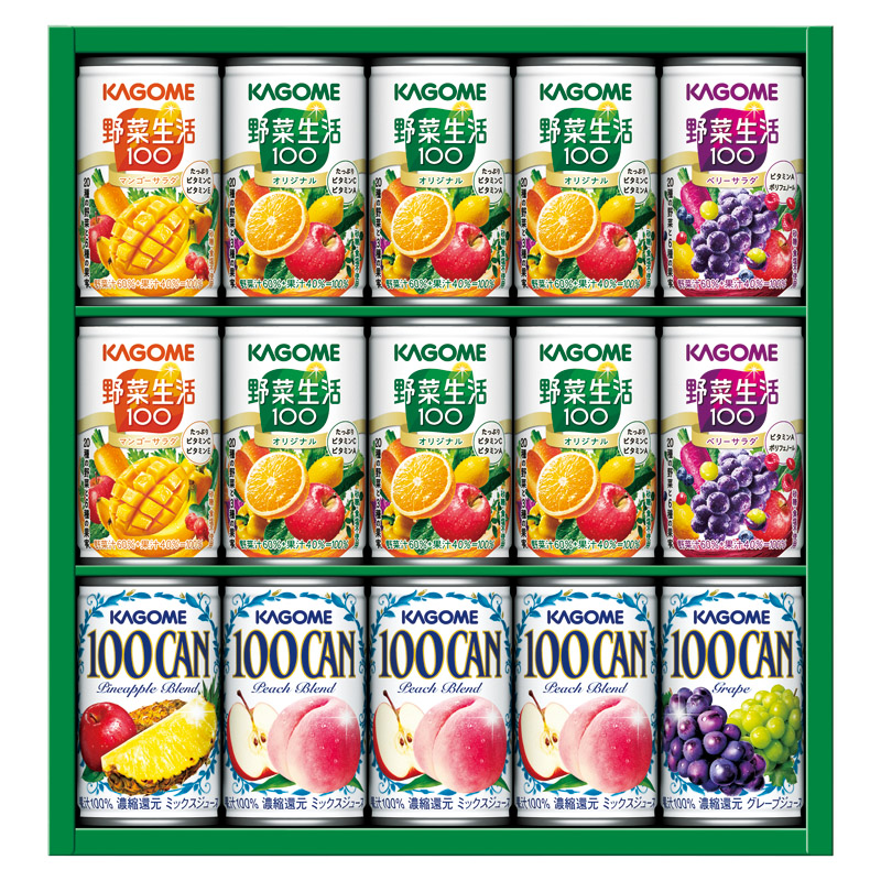 | コピー | 100%フルーツジュースのベストセラー「100CAN」と野菜&フルーツの美味しさが人気の「野菜生活100」の詰合せ。 |