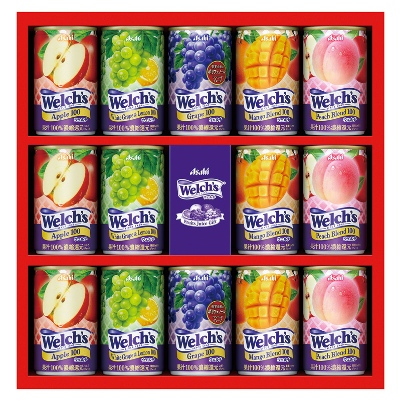 | 内容 | ウェルチ(コンコードグレープ100)(160g)×2、ウェルチ(アップル100・マンゴーブレンド100・ホワイトグレープ&レモン100・ピーチブレンド100)(160g)×各3 |